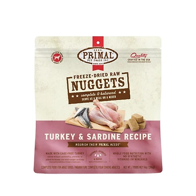 Primal - Freeze Dried Dog Food Nuggets - Raw & Natural Nutrition - Turkey & Sardine Recipe